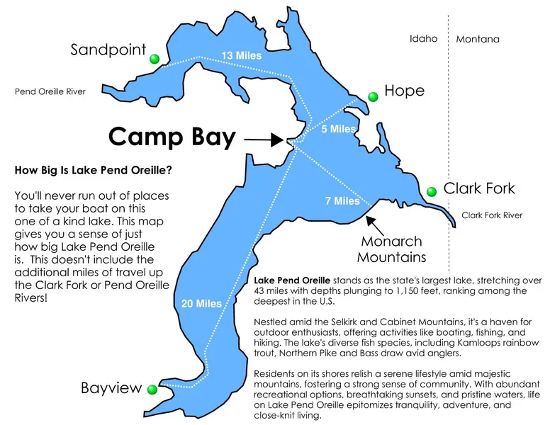 Become part of the exclusive, low-density, gated waterfront community of Camp Bay in Idaho, where you can enjoy southern exposure and gently sloped parcels. Lot 17 is a spacious 2.85-acre parcel featuring a 35-gallon-per-minute well, ensuring an ample water supply. This lot also includes a 30-foot covered boat slip in the community dock area, providing easy access to Lake Pend Oreille. Owners of Lot 17 will have access to the community beach, a minor structure with bathrooms, fire pits, and a family gathering space. Camp Bay boasts over 41 acres of open space, perfect for enjoying local wildlife and walking trails with family and friends. The roads are all paved, and each driveway has power and high-speed internet connections ready to go. Camp Bay is conveniently located about a 10-minute boat ride from some of the best restaurants on Lake Pend Oreille and a 30-minute drive from Sandpoin...