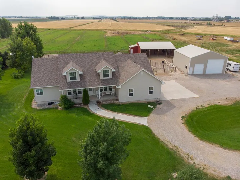 Perfect Country Setting! Beautiful 10.49 Acre property, all ready set up for horses or livestock. Darling front porch, that would be great to sit out in the mornings and enjoy the views. The home is lovely and has so many great features. The main level has a large master suite, with a walk-in closet, large shower, garden tub, and dual sinks. There is an additional main floor bedroom that would make a perfect mother-in-law set up. It sits on the opposite side of the home from the master and has its on bath and walk out to the back deck. There is an office off of the front entry and another room that can be used as either a formal living, or formal dining room. Large great room with high vaulted ceilings and lots of windows across the back of the home. Large kitchen with tons of cabinets, plenty of counter space, and a large walk-in pantry. Large mudroom off of the laundry. Upstairs with 3 bedrooms and full bath. Basement is unfinished, and has a walk out to the back yard. There is a 3 car garage with plenty of room for all the cars and some extra storage. Outside has a 36X40 Shop with extra tall garage doors. There is also a 24x48 barn with a 12 ft tack room. Great pastures and corral are all fenced with wood rail fence. Comes with water rights to the property.
