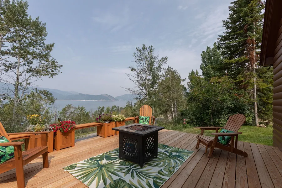 Gorgeous Palisades Reservoir views right from your deck! This charming, year-round access home is nestled on 7.6 private acres, just across from the public boat access, a short drive to Alpine, Swan Valley or Jackson Hole! Currently being used as a VRBO and being offered fully furnished, it has steady income and demand. It has been remodeled with new plumbing, bathrooms, and has spring water to the property. The views from the living room and kitchen are spectacular! Upstairs offers cozy bedrooms and a cabin feel. Sit by the cozy woodstove, or out on the deck or down by the firepit and enjoy the views! Palisades life offers boating, canoeing, paddle boarding, swimming, and fishing while still being close to town!