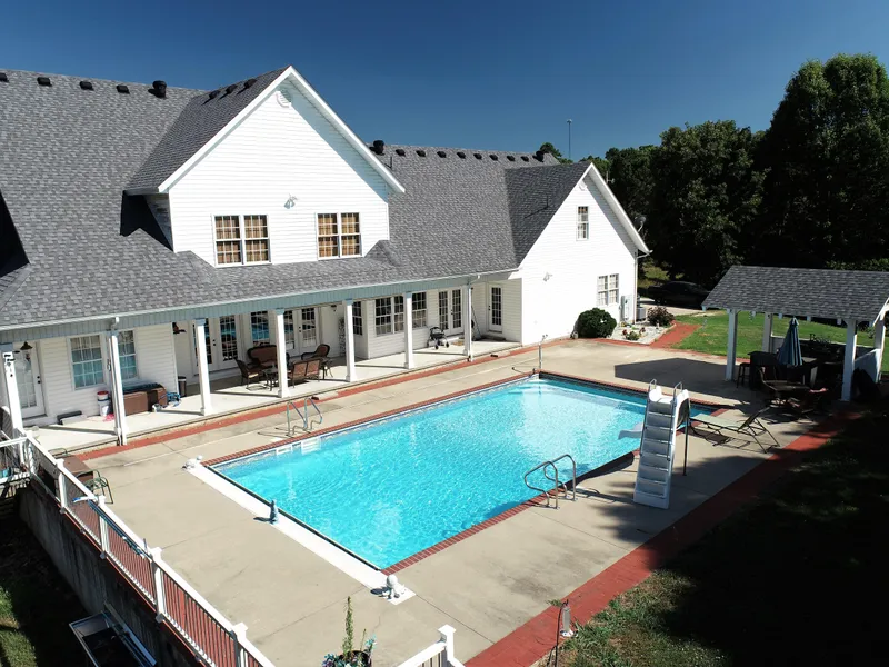 You do not want to miss this amazing Ozark Mountain Estate! This gorgeous 5 bedrooms 3.5 bath home sits on 37.4 acres of prime hunting land and could be your perfect hobby farm. That, along with the large in-ground swimming pool and outdoor bar and grill area, provide a private and peaceful escape. It is conveniently located less than 20 minutes from both Branson MO attractions and Table Rock Lake. The second floor includes 3 bedrooms, 2 large bonus rooms and a full bath, making it the perfect place to host guests. Between the attic space and the large crawl space there is an enormous capacity for storage. The finished shop building includes a large carport behind the house provides space for farm and recreational vehicles. The fertile front acreage could be your perfect hobby farm. Don't miss out on this beautiful Ozark estate! Call Betsy Robertson at 870-754-9899 for more details or to schedule your private showing.