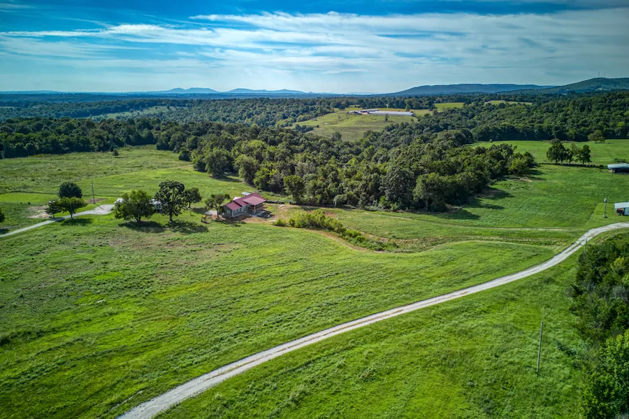 This stunning property is not only beautiful, functional, and private it is also super conveniently located minutes from town. This wonderful homestead is positioned just over mile off the paved highway near Bear Creek, north of Harrison, AR. A quick 5-minute drive puts you in the Wal-Mart parking lot. You are also only 25 minutes to Branson, MO. Pulling up to the land, you immediately notice the gentle, level, and soft rolling terrain. A majority of the land is lush and high-quality pastureland that is currently cut for hay. A section of hardwood timber and brush provides more privacy and seclusion, along with some wonderful habitat for the resident deer, turkey, and other wildlife. This small farm would be ideal for anyone looking to capitalize on the country lifestyle of farming, hunting, hiking, and just simply enjoying God’s incredible creation. In the corner of the tract are 3 large 40’X500’ poultry barns, clean and in excellent condition. There is no active contract on these barns; however, with some modifications, they could be active again if desired. The barns would be ideal for equipment storage, converted into horse barns, or even taken down and sold for parts. The workshop is 40’X40’ and has water, electric, concrete floors, 2 covered awnings on either side and more. Obviously, with this infrastructure, utilities are ample and on hand. The land is also conducive for livestock if you have a small farm in mind. Currently there is a 1993 28’X70’ manufactured home with 3 bedrooms and 2 bathrooms. It has an open-concept floor plan, a large master suite, a gas furnace, a wood pellet stove, and mini splits. The star of the show is undoubtedly the new construction custom home that is mostly finished and ready for you to come put your finishing touches on. It is a spacious 4-bedroom, 3-bathroom and is over 3,300 sq ft. The home has been custom-designed and built to last with a standing seam metal roof, LP smart siding, custom retaining walls, seamless guttering, and more. The main level has a large and spacious living/dining/kitchen area. It is plumbed and ready for you to add your desired cabinets and kitchen. Custom wood trim, wood ceilings, wood beams, massive windows, vinyl plank floors, and superb quality carpeting all round out some of the incredible features. The main level also offers wood doors, custom barn doors, a large master bath with a marble shower, office space, and a massive covered back deck with breathtaking views ideal for entertaining and relaxing while watching the sunset over the mountains in the distance. The large 2-car garage is finished, trimmed, and painted. The full basement is ideal for the large family with an additional 2 bedrooms, a storage room, a large bathroom, and a huge entertainment space with a walkout to the covered patio. This space has custom woodwork, plenty of windows, custom stair railing, and more. To find this type of property with so much beauty in this prime location is very hard. This pristine property has so much to offer and is ready to make someone a home. Call today for your private showing.