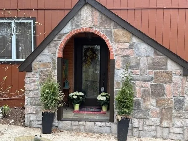 Perfect location. In town with the privacy of the country. Personality plus and a must see. Charming 4-bedroom, 3.5-bath home backed by woods with multiple entertaining decks, a private backyard, and abundant character. Main level has open concept with vaulted ceiling, wood and stone, tin ceiling entry with fireplace. Kitchen features chef ready granite counters, island, two sinks, two dishwashers with BBQ deck. It has 4th bedroom with full bath, and walk-in shower off living space. The upstairs has new carpet two bedrooms with a jack n jill bath (recently updated), a walk-out balcony. Then a primary bedroom ensuite bath , fireplace, whirlpool gardentub, walk-in shower, heated towel bar, walk-in closet, and utility closet with W/D hookups. Outside has huge deck with office and 1/4 bath. Then the coolest rock studio-she shed with lights and ceiling fan, potting shed with plumbed outdoor s...