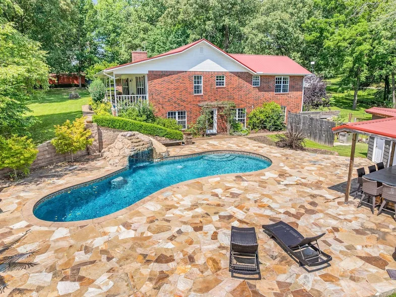 Welcome to your private country oasis in Harrison, Arkansas where nearly 80 acres of serene beauty meet 3/4 mile of frontage along the pristine Crooked Creek. Whether you're into fishing, canoeing, swimming, camping, picnicking, or ATV riding, this property offers it all. The 4-bedroom, 3-bathroom home is thoughtfully designed for both comfort and entertainment. Enjoy summer days in the inground pool complete w/a waterfall, slide, outdoor bathroom, and resort-style grilling & seating areas. The property also features a natural spring, koi pond & a gazebo perfect for fireside gatherings under the stars. Inside, the home showcases maple hardwood floors throughout the living room, hallway, and wide staircase leading to the fully finished walkout basement. The main level kitchen features concrete countertops, ample cabinetry, and direct access to the back deck overlooking peaceful views. The...