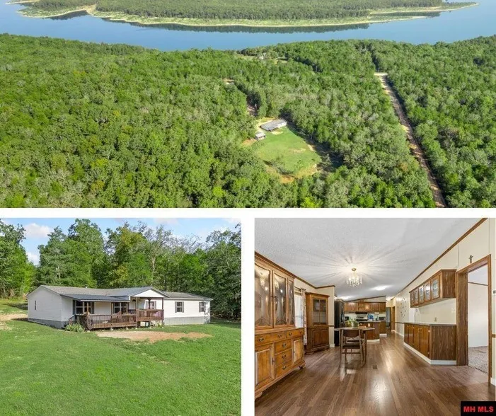 Escape to the country with this spacious 5-bedroom, 2-bath manufactured home on more than 20 acres m/l just minutes from beautiful Bull Shoals Lake! Enjoy open-concept living with a large family room featuring a cozy fireplace, durable laminate flooring, and a kitchen with a pantry for extra storage. The property includes a workshop for your projects, a storm shelter for peace of mind, and plenty of room for outdoor recreation or expansion. Whether you re looking for space to spread out, start a hobby farm, or simply relax surrounded by nature, this property offers endless possibilities. Conveniently located near area marinas, golf, and outdoor adventures your perfect retreat awaits!