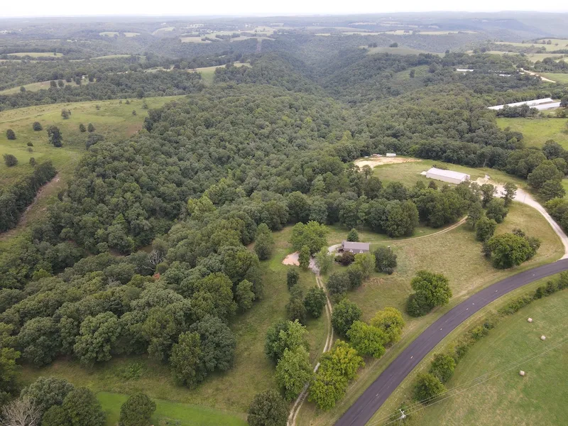Check out this remarkable acreage with a wonderful parklike setting, 3 story brick home, and highway frontage. Yes, you read that right all of this is on one property and just minutes from Harrison, AR, and Branson, MO. The property is being sold as-is. This estate is ready for you to come in and run with your imagination. The vintage feel and theme throughout the home has a funky and very cool vibe, and with some vision, this place could be really special. The centerpiece of the spacious home is the massive cylindrical brick fireplace that towers from the basement all the way to the upper level. The basement has 2 garage doors, a large safe room, the wood stove that feeds the fireplace, and the mechanical equipment. The second main level is complete with a kitchen/dining space with a wall oven, stainless refrigerator, disposal, exposed beams, and more. There is also a roomy living area, bedroom, bathroom, and laundry room on this level. The staircase is wrapped around the brick centerpiece as you make your way to the upper level. There is a landing/office space, along with 2 more bedrooms, a bathroom with a stand-up shower, make-up vanity, and a larger master bedroom. The home sets tucked back off the highway with excellent privacy and a good view of the incredible surrounding land. The land has gentle terrain and offers plenty of room to add outbuildings if desired. There is also additional adjoining land for sale with large metal shop. You are also about 1 mile from gas, groceries, and essentials. Excellent opportunities like this rarely present themselves. Call today for your private showing.