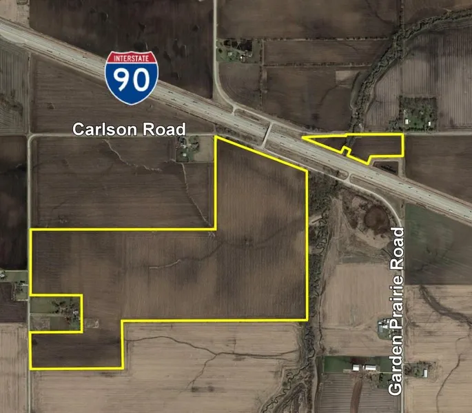 Frontage: There is approximately 1/8 mile of road frontage on Garden Prairie Road, 5/8 mile on Carlson Road, and 3/16 mile on Interstate 90.