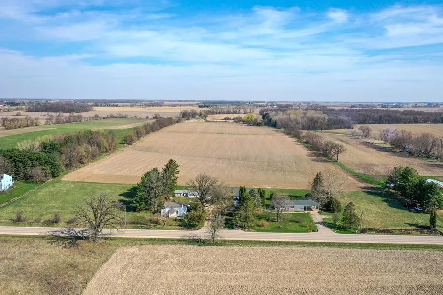 A great opportunity for multigenerational living or income opportunities on this property. Off of Hunter Road, you will find two homes on 5 acres. The main home is a 2-story farmhouse with tons of character. As you enter the farmhouse, you enter the dining room that leads into the kitchen. The main floor has a living room primary bedroom with a shared bathroom. The laundry is on the first floor. Upstairs you'll find combined bedrooms that could accommodate two rooms. Beside the farmhouse is a large barn and a detached garage providing plenty of room to park equipment. The second home is a ranch with a nice open floor plan in the living spaces. It has two bedrooms, one bathroom, and a large laundry and mudroom as you enter the home and is open from the kitchen into the dining and living area. The unfinished basement could provide additional living space. Large garage and carport. 2.5 acres +/- of established hayfields on the east and west of the homes. Within the North Boon School District (200). 27.87 acres of productive farm ground has an open tenancy for the 2024 season. The farm ground was planted in beans last year. A nice lane on the east side of the farm takes you back to the pond and recreational area where a creek flows into the pond. A nice variety of birch, pine, and willows surround the pond. Open spot south of the pond that would make a nice camping area or beach (with some added sand). Open ground could accommodate food plots and hunting opportunities. This property is perfect for someone looking to invest in farm ground as well as a getaway. Conveniently located minutes from the Wisconsin Border and Milwaukee area (1:15) or Chicagoland (1:30). Being sold as-is to settle estate. Taxes reflect 40 acres.