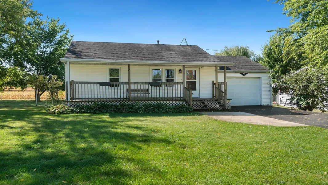 This charming, well-maintained ranch located in Capron features a cozy living room, a functional kitchen, two bedrooms, and a full bathroom. Enjoy the beauty of hardwood floors throughout the living room, hallway, and bedrooms. The home also boasts a full basement with laundry, vinyl windows throughout, with bedroom and living room windows replaced in 2022 by Window World and a transferable warranty available to buyers (transfer fee is buyer's responsibility). Relax on the covered front porch, or in the spacious, fully fenced backyard (new in 2021). Other updates include a new driveway in 2024 and a newer water heater, ensuring move-in ready convenience. Property is being sold as is.