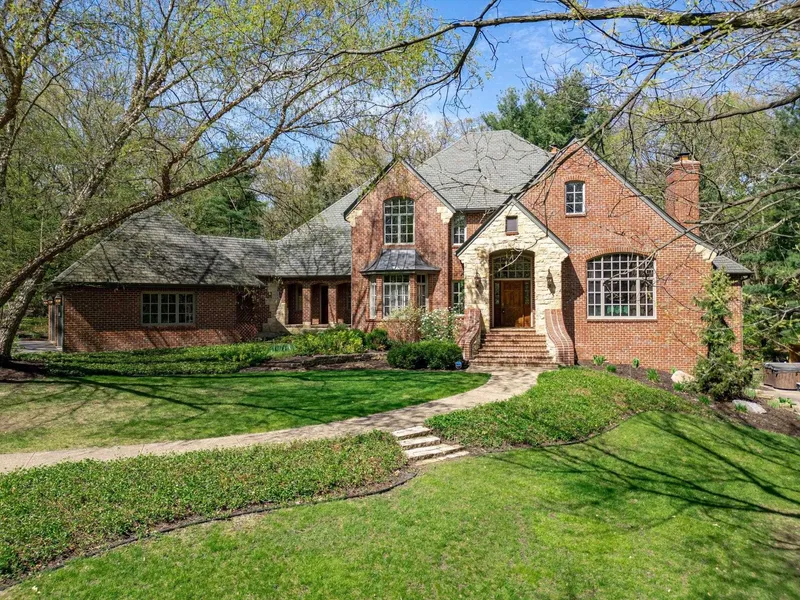 Nestled in serene, wooded tranquility, this exquisite estate is a masterpiece of craftsmanship & design. Situated on 5 private acres, this all brick and stone custom-built home is a testament to unparalleled quality & attention to detail. Every corner reveals a unique touch, from the hand-routed woodwork and beamed, arched ceilings to walls of windows that invite the beauty of nature indoors. Step into the foyer, where soaring ceilings & a dramatic curved staircase greet you with elegance. The study exudes charm with its cozy fireplace & remarkable architectural details, while the formal dining room provides the perfect setting for gatherings, complete with a serving area designed for effortless entertaining. The chef’s kitchen featuring quality finishes & a second stunning staircase. Adjacent to the kitchen is a sunroom/breakfast room that offers tranquil views of the picturesque backyard, ideal for dining or relaxing as you take in the wildlife. The living room is a centerpiece, showcasing a wall of windows, intricate crown and ceiling moldings, a stately fireplace wall with built-ins, & craftsmanship that leaves no detail overlooked. The main floor master suite boasts new hardwood floors, double closets, & a spa-like bath. Completing the first floor is a thoughtfully designed laundry room that leads to an oversized 4-car garage equipped with a Tesla charging station. In the upper level, you’ll find three additional bedrooms & two baths, maintaining consistent quality. The walk-out lower level is an entertainer’s paradise, featuring a family room with a stone fireplace, a bar/game room, a full bath, & abundant storage space. A few updates include: Newer furnace, 75 gallon water heater, R/O system, stand alone ice maker, garbage disposal, newer Kinetico water softener system, updated bathroom, & well pump. Set on a private road within an area of only five estates, this property is enveloped by 35+ acres of pristine woods & meandering creek, ensuring unparalleled privacy and beauty. Despite its secluded ambiance, the home is conveniently located just minutes away from parks, nature preserves, bike trails, I90/I39, 173 & so much more. With nearly 6,000 square feet of finished space, a timeless architectural design, and a setting like no other, this estate truly offers the best of both worlds—seclusion and accessibility. Don’t miss the chance to experience a lifestyle of elegance, craftsmanship, and natural beauty at this extraordinary property.