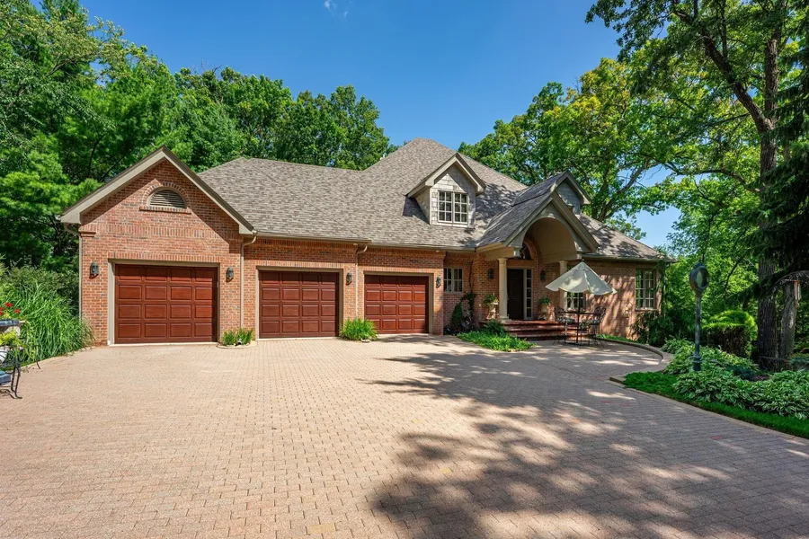 Hilltop Brick Estate on 3.25 acres with breathtaking views and unmatched craftsmanship in Boone County! Welcome to a truly extraordinary offering - an incredible one-owner brick estate nestled atop a wooded and private hilltop lot. With 5,488 square feet of meticulously maintained living space, this exceptional home blends timeless elegance with custom design details that make it truly one-of-a-kind. Step inside and be immediately captivated by the soaring volume, custom millwork, and refined finishes throughout. The home's thoughtful open-concept layout includes both formal and informal living spaces, offering an ideal blend of comfort and sophistication. Expansive windows frame picturesque views in every direction, allowing you to enjoy the changing seasons and native wildlife from the privacy of your own sanctuary. The custom chef’s kitchen is as functional as it is beautiful, seamlessly flowing into the dining area and out to a stunning circular terrace, perfect for al fresco dining or a peaceful morning coffee. The home features three gracious bedrooms, including a luxurious main-floor primary suite complete with a spa-inspired ensuite bath. Upstairs, two additional bedrooms share a well-appointed Jack & Jill bath, while a spacious loft offers the perfect spot for a study, reading nook, or creative retreat. The finished lower level includes a large rec-room with fireplace, full bath, and an exercise room - flexible space that can easily be tailored to suit your lifestyle. Additionally, the unfinished attic was thoughtfully designed with the potential to add additional living space, giving you room to grow. Situated in a quiet, tucked-away horseshoe subdivision, this home offers quick access to both the State Street and Riverside corridors via Olson Road, making it both private and conveniently located. Don’t miss your opportunity to own a home that combines unmatched craftsmanship, serene natural beauty, and thoughtful design. Refer to the attached documents for further information and recent updates.