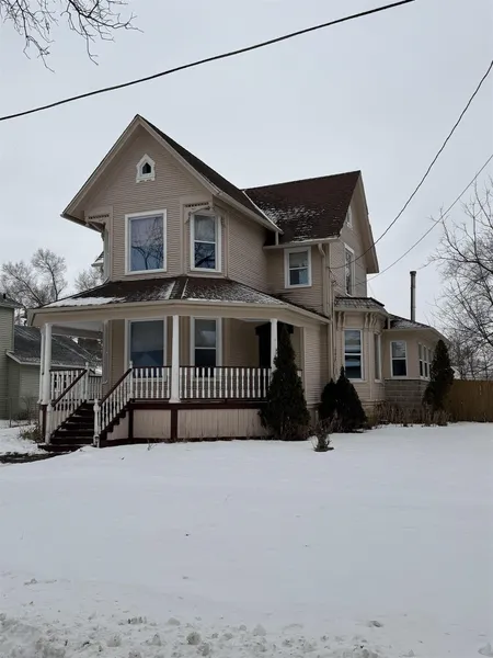 Step into timeless charm with this 4-bedroom, 2-bath Victorian home nestled in the quaint small town atmosphere of Capron. Rich in character and craftsmanship, this home showcases lovely custom woodwork, classic pocket doors, hardwood floors, and soaring 10-foot ceilings that create an inviting sense of space and elegance throughout. The thoughtfully designed main floor features a primary bedroom and a convenient main-floor laundry offering both comfort and practicality. Outside, the wraparound porch is classic and ideal for capturing the charm and slower pace of small-town living. A large barn/garage provides ample storage, workspace, entertaining space, or hobby potential, adding versatility rarely found with homes of this era. This Victorian gem blends historic beauty with everyday functionality, all in a peaceful community where neighbors know one another and life feels just a little simpler. A truly special opportunity to own a classic home with enduring appeal.