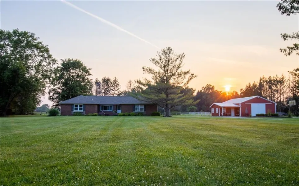 LOCATION! 10 acres located west of heavily sought after Whitestown/I-65 - ranch home and mult outbuildings. Infinite possibilities as residential and commercial. Home with multiple garages, work space, and building for own business. Soon will be split by new Ronald Reagan Corridor, providing prime acreage both sides, not disturbing main commercial building- 65x80 building w/office, heat/air, water, elec, exhaust fans, 16' ceilings, plumbed for bathroom. 2nd barn 24x40, horse stalls, storage, power/water. Perfect for the entrepreneur looking for business with building and office, and home for self/key employee. Property will then be high visibility, prime location, highly sought after commercial real estate, leaving room to grow.