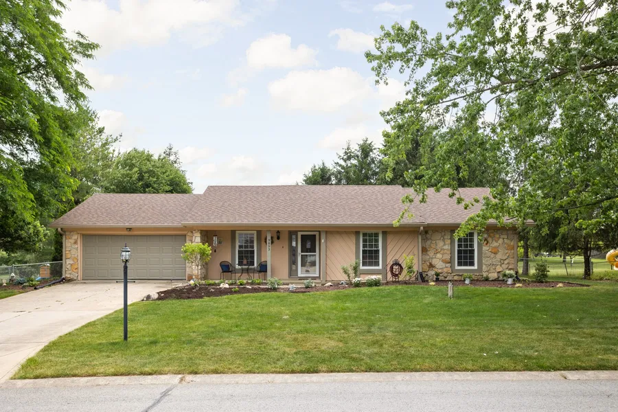 Welcome to this lovely Zionsville ranch with 3 bedrooms and 2 full baths. The spacious primary bedroom features an ensuite with a walk-in shower, a walk-in closet, & sliding doors that lead to an inviting patio. The kitchen has been updated, featuring granite counters, a stylish backsplash, white cabinets, a new gas range, and microwave. A large office with French doors and 2 large closets could be used as a 4th bedroom or additional den. This home sits on just over a half acre and the fenced rear yard is anchored by mature trees that provide privacy and create a serene oasis while relaxing on the patio. Excellent location within walking/biking distance to the trail, schools, shopping.
