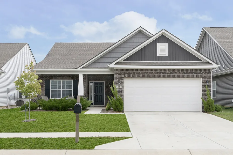 Immaculate, like-new Whitestown ranch home, built in 2020. This residence surpasses new constructions, with blinds already installed. The open-concept kitchen, with a spacious center island, seamlessly connects to the inviting living room, offering a great view of the backyard and a picturesque pond. A versatile flex space at the entrance is perfect for dining rm, play rm or home office. The primary bedroom features vaulted ceilings and an elegant ensuite bathroom. Two additional bedrooms and a hall bath complete the interior. The backyard with a patio is perfect for gatherings, overlooking the serene pond. Close to shopping, dining, and easy I-65 access.