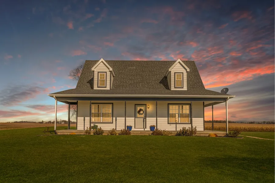 This charming farmhouse, situated on a tranquil 1.5-acre parcel, is the essence of country living. Constructed in 2017, the home is modern and new, yet exudes the quaint feel of an older home. The main level features a generous primary bedroom with vaulted ceilings and a relaxing, spa-like ensuite bathroom. Upstairs, two spacious bedrooms provide plenty of space for kids or visiting family. The open floor plan and vaulted ceiling in the great room, create a spacious and airy atmosphere throughout the home. The property's charm extends outdoors with a wrap-around porch, inviting you to enjoy morning coffee or view breathtaking sunsets in a tranquil setting. The surrounding countryside is a picturesque backdrop, creating an oasis for a simple and relaxed rural lifestyle. Just minutes away from the Big Four Trail, outdoor enthusiasts can indulge in leisurely walks or bike rides, while the c...
