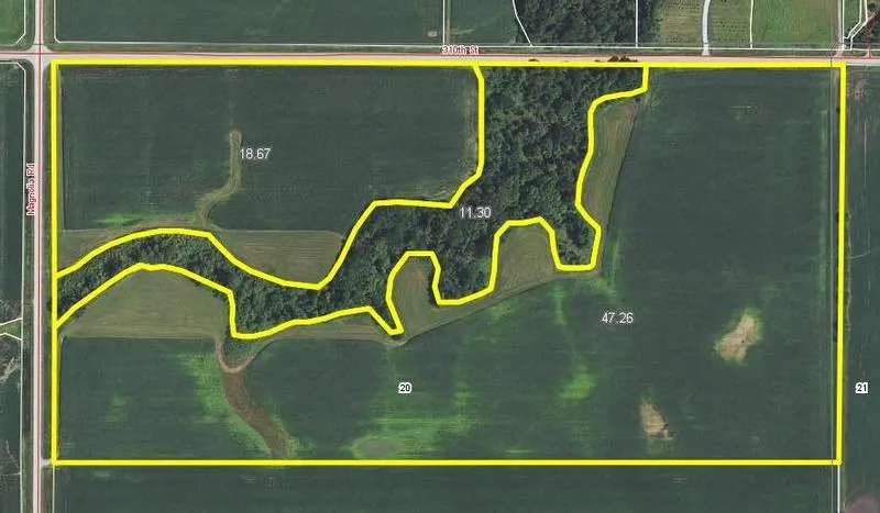 Good quality cropland with about 8.9 acres maintained in grass/hay, plus 11.3 acres of timber for hunting.