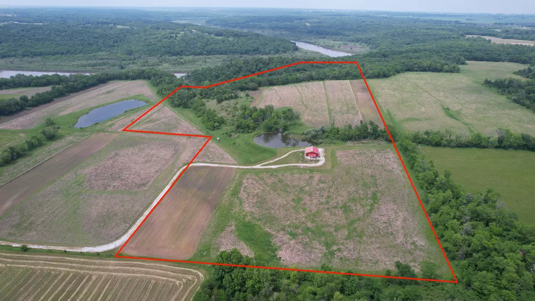 The building is on a high setting with views in all directions including west to the Des Moines River. You can watch wildlife at all times of the year. The pond was 30' deep when dug and well stocked with fish. The building was built in 2021 and is 40' x 40' with the apartment area on the south taking up the south 14' or 640 sf of living area. There is one large bedroom, kitchenette, bathroom and living room. It is well insulated with foam insulation and easy to heat. It has electric baseboard heat and AC. The wood-stove can more than sufficie...