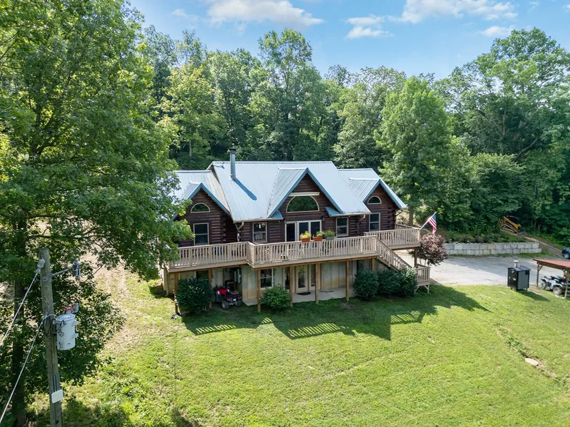 Comfort, privacy, and rustic beauty meet in this picturesque Appalachian log home nestled among 10 acres of gorgeous Kentucky woods. Get away from it all, everyday! 10 minutes from Walton & quick access to I-75. This home has it all! Open floor plan, hardwood floors, cathedral ceilings w/ exposed beams, gourmet kitchen w/ gas range & walkout to covered porch, floor-to-ceiling stacked stone fireplace in great room, lower level has 2nd master suite, main-floor laundry. You'll love the gorgeous views of surrounding woods! Enjoy peace of mind from 8.5KW solar panels w/ auto switch over during power outages. Wood boiler helps keep heating costs low & home comfortable in cold weather. Relax in the custom-built sauna (seats six) with Finnish made wood stove. Some outdoor features: 12x16 root cellar, gazebo, swimming pool, greenhouse, vineyard w/ 50 Marechal Foch & some Neptune, apple and peach trees, pond, & electric fence around 3-acre front field. Recent improvements include house logs sealed, new driveway installed, and cistern cleaned and resealed. Whether you are a hunter, prepper or just looking for some peace and quiet, this home won't disappoint! Schedule your showing today!