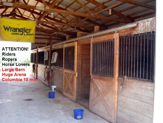 Perfect set-up for horse loving family. 11.8 acres 10 minutes NE of Columbia. 36X48 5 stall horse barn, a huge outdoor arena, pipe fenced corrals and good fencing. Very nice 1900 sq ft home 3/2/2. Energy efficient heat pump and very private.