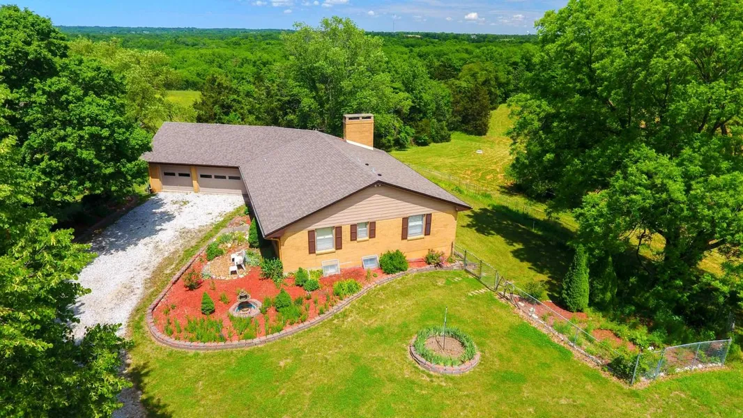 Gorgeous setting just minutes from Columbia off blacktop! Columbia schools! 22.5 acres of beautiful rolling land. Expansive views of the lake, complete with gazebo and dock, can be viewed from inside the Ranch-style home, with attached 3 car garage. Flower gardens, shade trees, vegetable gardens, green house, machine shed, tool shed AND orig. 1920s farm home all adorn this one-of-a-kind property!