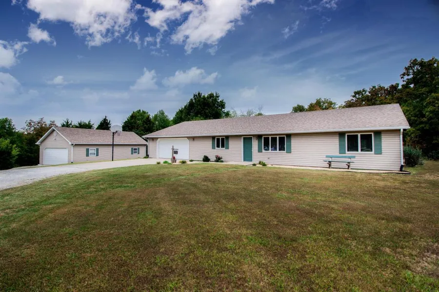 Rare country property in Columbia Schools (Two-Mile Prairie Elementary)and Hallsville address, This spacious country home sits on a lovely, almost 6-acre wooded and open lot with a shared pond and deer stand, 20 x 40 detached garage with storage in attic and a separate, finished, heated and cooled ''Man-Cave'' with its own entrance. Siding and roof re-done after hailstorm in 2003. 14 x 20 Screened Porch. Water Softener Stays, Leased 500-gallon Propane Tank. Well Pressure tank new in 2010. Andersen Casement windows, 4 ft wide hallway. 220-volt electric in detached garage and pre-wired for hot tub. Cub Cadet lawn tractor for sale separately for $1500. Mid November closing preferred.Price includes new carpet in all bedrooms prior to closing, up to $2,500. See samples in MBR.
