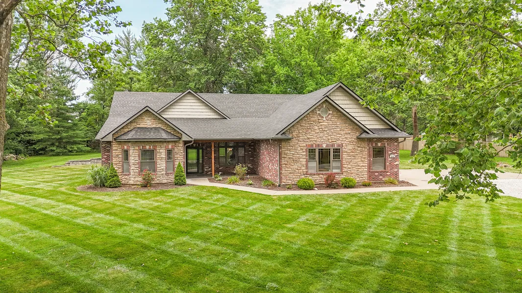 Immaculate Custom Built 3 BR, 2 BA, 2296 Sq. Ft. Home on Wooded 1 Ac.+/- Lot!! Lots of Custom Finishes Including Front & Rear Stamped Concrete Covered Patio's - Rear Covered Patio with Wood Beam Ceiling - Impeccably Landscaped - Mature Tree's for Shade - Spacious Living Room with Wood Burning Fireplace & Vaulted Ceilings - Large Eat In Kitchen with Breakfast Bar, Access to Rear Patio - Dining Room with Tray Ceiling & Large Andersen Windows with Transoms, Hard Wood Flooring - Huge Primary BR, Tray Ceiling & His & Her Walk In Closets Nice Sized Primary BA, Jetted Tub & Dual Sinks - Deep 2 ½ Car Garage with Attic Access - Private Setting - Did I Mention the NEW 30 year Architectural Shingled Roof - Home is Ready & Waiting for New Family!!