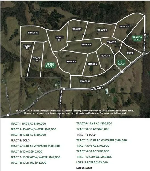 Only 20 Minutes to Boone Hospital. This property offers many opportunities for hobby farms, horse or outdoor enthusiasts. Great building sites for walk-out style homes. Located on blacktop. Power and water included. These properties have available beautiful views, with rolling hills, ponds and timber close by. Abundant wildlife.