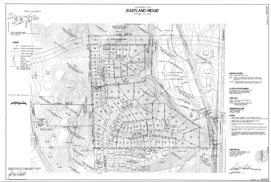 Preliminary plat for 21 residential lots; wooded; walkouts and slabs; attaches to Eastland Hills Estates