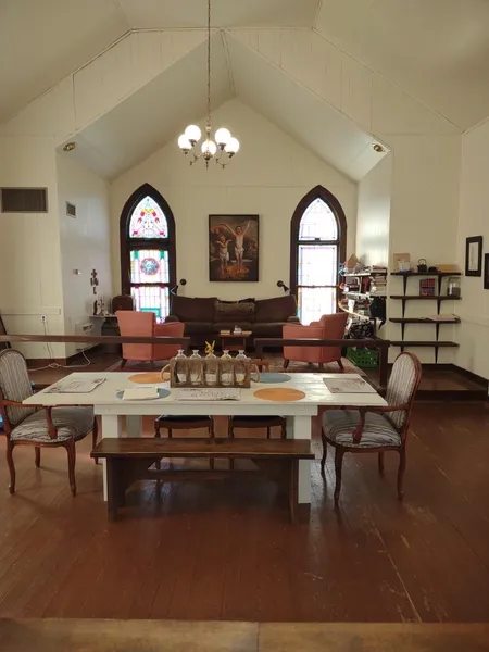 Historic property in Bosque County! A rare find on corner lot! Spacious 1900 square foot! Historic church was built in 1913 with the addition added in 1960. The owners have done a tremendous job to create a home, while keeping the true beauty of this church! Massive sanctuary has vaulted ceiling, gas log fireplace and real wood floors! There are 11 Architectural stain-glass windows in living room, 9 which are 9ft. tall! Large dining area for entertaining family and friends! Kitchen has original vintage sink, glass-top stove and new door. Bathroom has deep soaking tub and antique dresser vanity with sink. Updated throughout! Improvements include: Foundation repair, new plumbing, laminate flooring, paint, tub, 2 mini split systems, light fixtures, new windows in the addition, gas log fireplace, and updated electric throughout! Just needs exterior paint! Located in the Bosque County Seat! This would also be great for an Airbnb, VRBO, or private events!