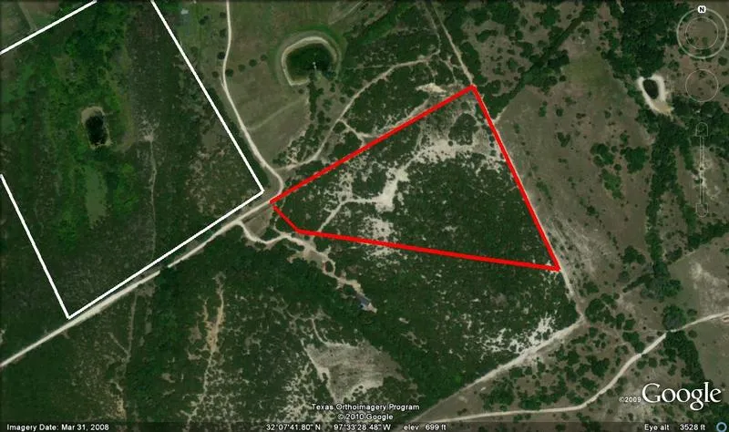 Heavily wooded 10 acres on a very private road. Hilltop build site would offer beautiful view of Brazos River Valley.
