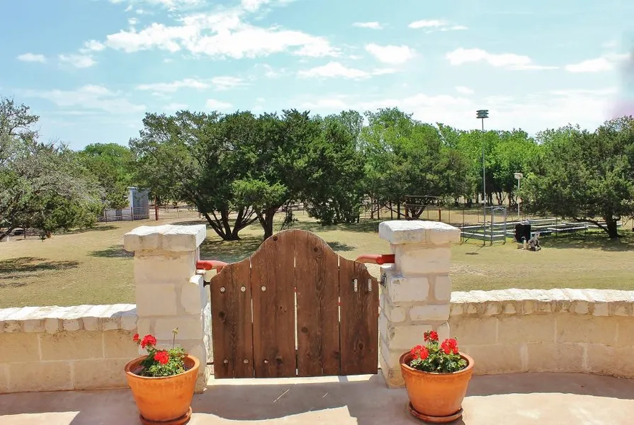 Property perimeter is fenced with net wire and 2 strand barb wire in excellent condition. Front entry gate has automatic opener.