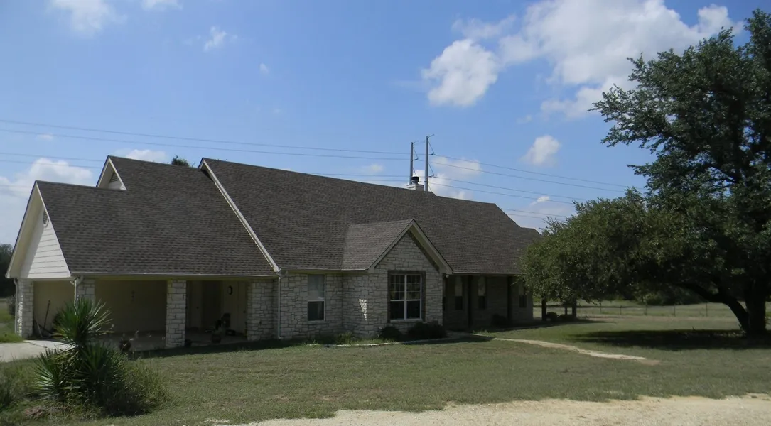 This is a beautiful like new home on with 2 stock tanks, good cattle or horse property. Fenced cross fenced with loaf shed & a loading chute. The home is all custom with oak cabinets and flooring. Three large bedrooms with walk in closets plus an office with a closet and built in cabinets. Nice open kitchen and living has a granite top bar seats 8, breakfast area & formal dining. Covered front & back porches & lots of beautiful shade trees. Good 5 strand barbed wire fence.