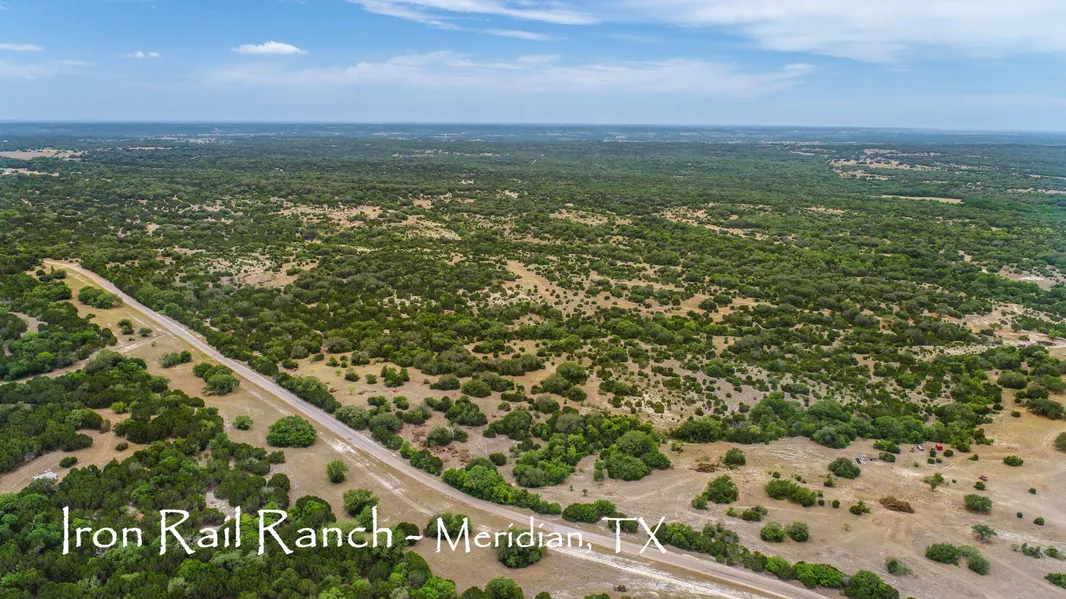 IRON RAIL RANCH is 1,238 acres located at the "TOP OF THE HILL COUNTRY". Panoramic VIEWS from multiple HILLTOPS with elevations as high as 860 ft. - Meandering CREEK beds, over 10 miles of WINDING TRAILS, wild game and DEER, game FEEDERS and watering TANKS in place, multiple WATER wells drilled throughout, small open grassy areas for FOOD PLOTS, huge LIVE OAKS, thick bushy areas providing nice cover to wildlife, and over ONE-MILE of PAVED county road FRONTAGE. For a bit of nostalgia, that also acts as the west boundary of the ranch is over 9,000 ft of the SANTA FE Rail Road line. It's a site to see from the overlooking hills of the ranch! With convenient travel times from Dallas metro area and Austin and just minutes to WACO, this ranch is an easy place to retreat. Nearby amenities include LAKE WHITNEY, shops and dining in the charming downtown Meridian, Kimball Bend Park, Meridian state...