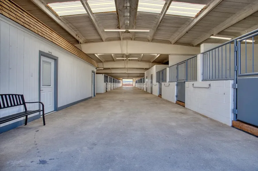 Experience unparalleled privacy atop rolling hills, surrounded by expansive high-fence hunting ranches that offer breathtaking, unobstructed 360-degree views. Featuring an 18-stall cinder block show barn with durable construction and thoughtful design. Each 12x15 stall in the main barn includes individual runs, providing comfort and ventilation. Inside the barn, you'll find everything needed, including an office, bathroom, breeding lab, tack room, feed room, and a convenient wash rack. The facilities also include a 50-foot breaking pen, outdoor round pen, and a mare motel with 7 or 14 stalls, complete with lights and automatic waterers. Equipped for training and events, the property boasts a 150x200 outdoor arena with roping boxes and a chute, and thousands of feet of durable pipe fencing. Multiple turnout pastures of varying sizes complete this impressive setup, making it an ideal retre...