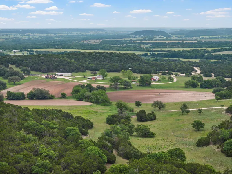 Located in the highly desired Norse Historic District of Bosque County that was originally settled by Norwegian immigrants in the late 1800s, this authentic frontier farm and ranch homestead has continued to be a working operation since that era. Properties in this region reflect a blend of historical significance and agricultural utility, making them unique representations of Texas Norwegian heritage. Ellingson Farm has been owned by the same family for the past 20 years, and under their stewardship, the farm has been meticulously cared for to maintain its historical significance. The farm is characterized by the stunning, diverse Bosque County topography with dramatic elevation changes, box canyons, rock outcroppings, native grasses, cultivation and good surface water. The highest elevation points on the property overlook the improvements and farmland situated in the mouth of a valley, creating a serene and secluded homestead.