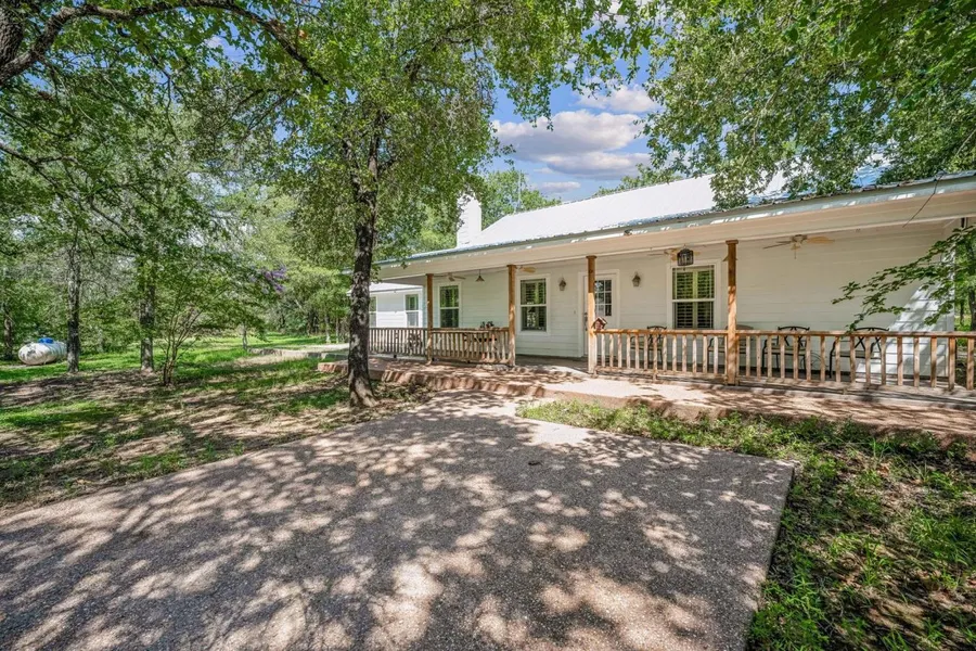 This amazing home is secluded, nestled among Spanish and Live Oak trees on 5 beautiful acres. Enjoy exploring the outdoors. The full length porch and patio is a great place to relax with your favorite beverage while watching the wildlife. Entering through the front door reveals open concept, stone fireplace as center the living room, viewable from the kitchen, dining room enjoy the wildlife in the backyard. 4 Stools surround the kitchen bar and countertop is sculptured sealed concrete, beautiful tile backsplash accents the kitchen. A combo pantry, utility room in the kitchen. Decorative lighting throughout the home compliments the character of the home. Family TV room is perfect for entertaining, a playroom, work from home, it's a private office area. Master bedroom has a private bath and shower. Two quest bedroom share a bath. Storage galore! Detached 2 car garage, attic storage, additional room, mini kitchen, water, electricity, RV 50 AMP -