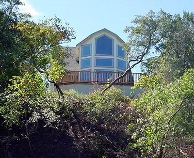Three bedroom lodge style home has a view of the lake from upstairs and backs up to a large canyon with a small creek. Rustic real wood floors upstairs, granite tile countertops, and a deck that overlooks the creek. Owner/Partner is a real estate broker.