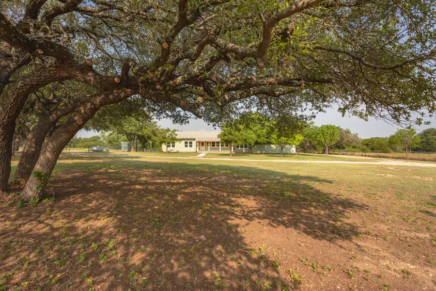 The property is fenced, has big oak and pecan trees, and sits in the middle of larger ranches. Plenty of room to build a shop or barn. No city taxes and no restrictions.