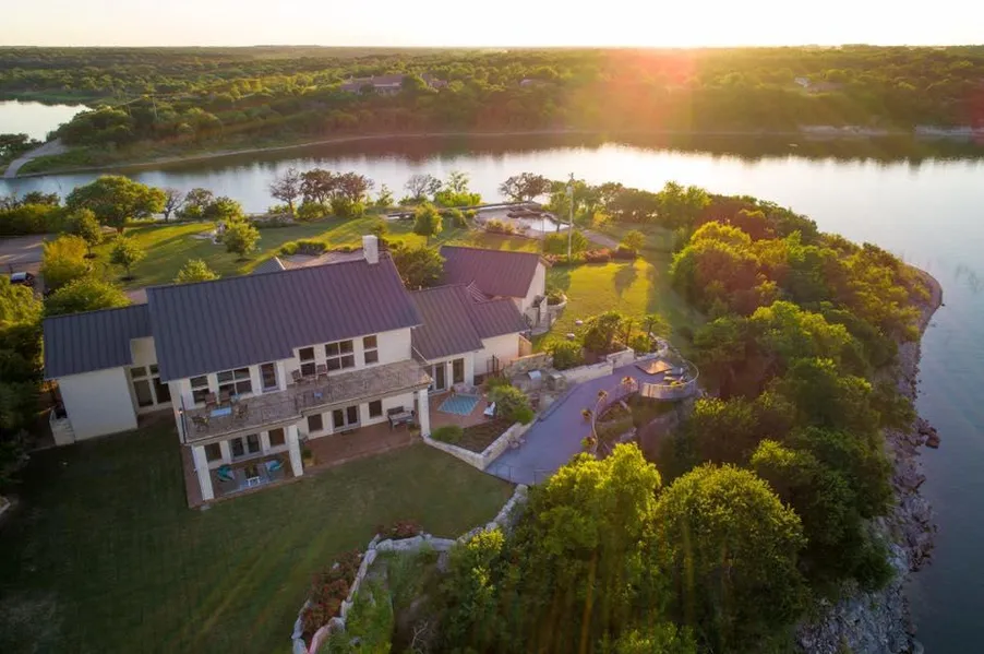 Breathtaking -- Lakefront Peninsula, on over 2 acres with stunning views in every direction. This home has it all and more! Just a quick drive to Waco and DFW it makes for the perfect weekend retreat or an amazing place to retire. It's in the most adorable gated neighborhood, it has a beach entry to the lake, a salt water lap and sports pool, rock walls on both sides of the property line and it's own additional gated entry for added privacy and a resort-like feel! This property is IMMACULATE!