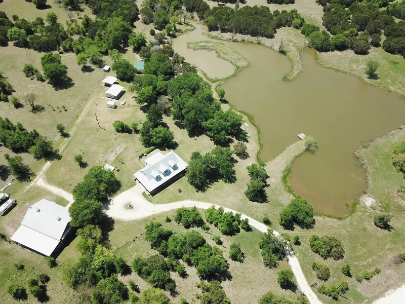 This is the one you've been looking for. Move in and enjoy with nothing needed. Beautiful custom stone home sitting on 42 acres. 2400 Sq. Ft. shop with tall doors with electric and water. 1200 Sq. Ft. extended cover on back of shop. 3 bedroom 2 and half bath custom home with lots of special features such as long leaf pine floors, oak cabinets in kitchen, sauna room, screened in porch overlooking lake, many others. Very nice guest house with kitchen, bath, and bedroom. Front porch looks out at private lake. Enjoy your 3 acre private lake with a deck and lots of fish. Wildlife galore. Property has 2 water wells and is completely fenced and cross fenced twice. Highway frontage on 1 side county road on 2 sides.