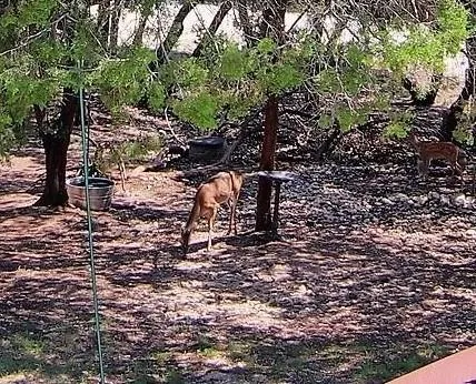 Welcome to the Hummingbird Hide-Away! Rustic Luxury! Upscale retreat! Wildlife and views are abundant! Picturesque views for miles! Built in 2004, this 2208 square foot home is warm and inviting! Porch is 150 ft wide x 12 ft deep, has electric lantern lighting, and offers views of Meridian! Enjoy sitting with family and friends, watching the hummingbirds and deer! Home has redwood cedar flooring throughout! Large, open living concept offers rock fireplace, multiple seating areas, plus dining area, wagon wheel lighting, and picture windows to view the surrounding wildlife! Spacious kitchen has redwood cedar cabinets, stainless appliances, pantry, breakfast area and refrigerator. Both bedrooms are large en-suites! Master bath has large tiled shower, soaking tub, sheet-metal backsplash, antler hardware, and walk-in closet. 2nd bedroom offers space for bed and bunk beds! Over-sized lau...