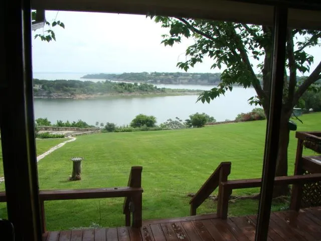 Lakefront Home on Lake Whitney, 2br 2ba 2 car carport, workshop, deck overlooking lake with fire pit, patio with fire pit overlooking lake, large backyard all landscaped front and back, 2 fire places, 2 living areas, open concept kitchen living area, panoramic views from all rooms facing lake, carpet, wood floors and tile, large master bedroom and bath with Jacuzzi tub and separate shower, large closet, easy walk to water and marina behind home, sprinkler system in yard and landscaped areas. Gated community with very nice neighbors.