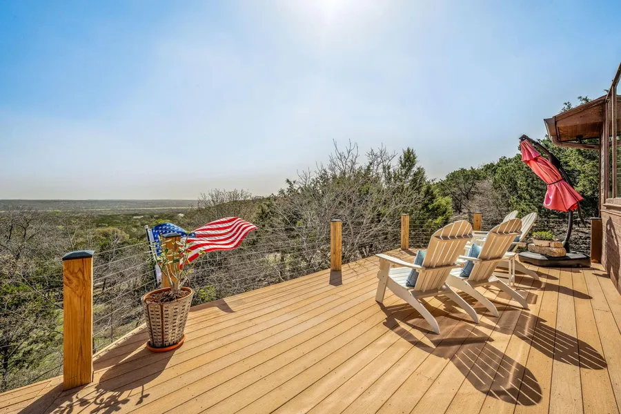 Nestled atop a scenic hill in Clifton, Texas, 487 County Road 4270 offers sweeping views and 100 feet of elevation change across 10.01 beautiful acres. This charming lodge-style home captures the essence of rustic elegance with modern comfort, providing a peaceful country retreat just minutes from town. Enter the property through one of two gated entrances and be welcomed by an open-concept living and kitchen area featuring large windows that flood the space with natural light and frame panoramic countryside views. The kitchen is designed for cooking and entertaining, with a warm blue-and-white cabinet scheme that pairs perfectly with the homes rustic finishes. French doors open from the main living area to a spacious porchperfect for taking in breathtaking Texas sunrises and watching the wildlife. The main level includes two bedrooms and two full bathrooms. The private primary suite is tucked away in its wing and features scenic views and a spa-like bathroom with a soaking tub and walk-in shower. A separate guest suite offers added privacy with its full bath and sliding barn door for charm and seclusion. The lower level of the home provides flexible spaceperfect as a guest suite, game room, or additional living areawith a convenient kitchenette and access to a covered patio. Energy-efficient features include high-efficiency zoned HVAC, foam insulation, and double-pane windows and doors. Outdoors, a well-equipped workshop adds functionality and the seller has meticulously groomed the grounds to enhance the property's natural beauty. Wildlife, serenity, and wide-open skies make this the perfect getaway or full-time residence. If you want peace, privacy, and a taste of country living in Bosque County, this property delivers it all.