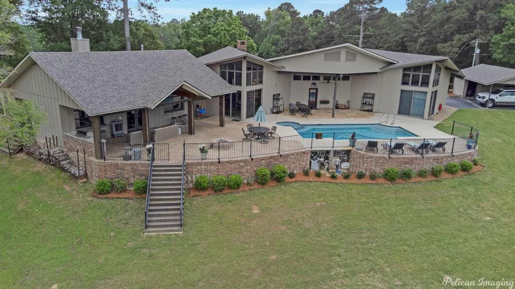 Rare Find in Bossier Parish, North Louisiana - Luxury Meets Nature in Elm Grove - Fisherman's Paradise - Hunter's Retreat - Discover an Extraordinary Lifestyle in this Stately 5-bedroom, 4-bath, Property Nestled on over 52 Acres of Lush Louisiana Beauty. 750' Feet Lake Bistineau Waterfront, Stocked Pond, Inground Pool, Dual Guest Houses & an Outdoor Kitchen Enhance the Outdoor Living Area. Indoors, the Lavish Master Suite Includes Custom Walk-in Closet & Cabinets & a Steam Shower. The Pool-House Boasts a Full Size Kitchen & Living Room with a Fireplace & a Bar with Roll Top Garage Doors that Open to the Outdoor Kitchen Area - A Charming Barn & 2 Workshops----Steal the Show. Beautifully Landscaped, Paved Driveway, & Breathtaking Views of the Lake. Electric Screens & Mosquito Misting System Extend Your Year Around, Outdoor Entertaining -Contact Your Agent Today to Tour this Slice of Paradise. Heated Square Footage reflects main house only. Plenty of Additional Living Space, 2916 sf, include a Cabin, Guest House & Pool House, not included in the Heated Square Footage of this Listing. Listing includes 2 Guest houses, Pool House with over 700' Heated SF, Outdoor Kitchen area & Fire Pit. 30x40 Shop on Slab. 750' of Lake Frontage. 3.6 Acre Stocked Pond and Inground Heated Pool.