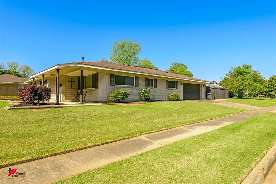 Great curb appeal in this gorgeous updated all brick home on corner lot with circular drive! HUGE OPEN FLOOR PLAN! Large open kitchen with beautiful wood cabinets, quartz countertop, island with granite, stainless steel built-ins. Refrigerator remains! Wood-like ceramic tile in the open areas, engineered wood or laminate wood-like flooring in the bedrooms. ( NO Carpet!). Updated bathrooms, and a Murphy Bed in the 2nd bedroom! All windows have been updated with quality vinyl windows! Tankless water heater for the whole house! Security system, sprinkler system. Garage floor coating, Fully fenced private backyard with a nice storage shed! architectural shingle roof. Side entry garage. The large screened-in patio is great for family and friends to enjoy! Seller will consider leaving washer, dryer and furniture with acceptable offer!