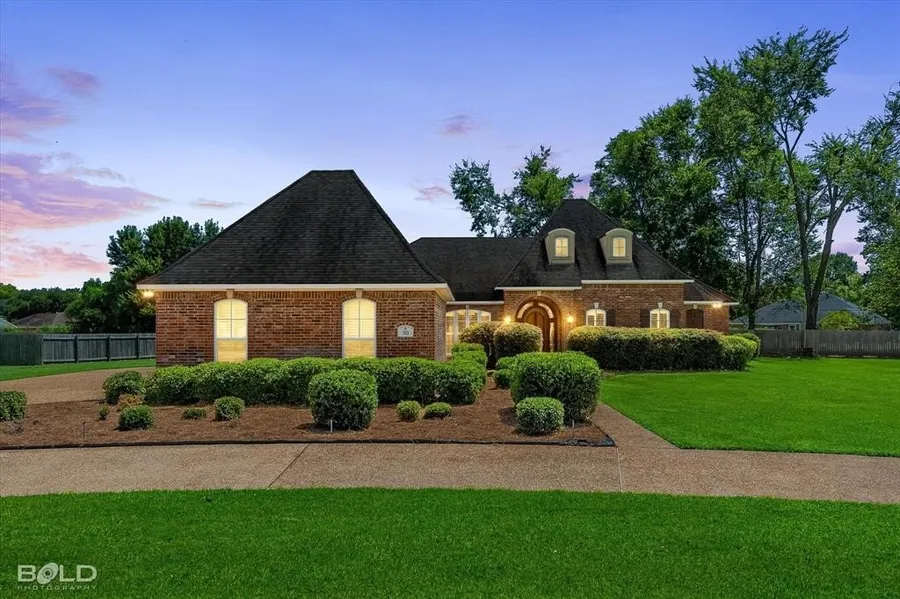 This stunning, custom-built home features 4 spacious bedrooms with walk-in closets, 3 full luxurious bathrooms with beveled mirrors, and a 20x20 family room with its own private entry suited for guest. This meticulously designed and well-maintained home sits on over an acre of land at the end of a tree-lined cul-de-sac. This quaint community is limited to nine single-family residences who enjoy a fully stocked community pond. Enter the home through the grand 12-foot tall, solid wood and wrought iron door into the foyer before arriving in the living room, where you can cozy up next to a fire or exit the home through French doors to enjoy serene atmosphere of the outdoor space which is sure to become your own private oasis. The luxury primary suite is a private retreat with spacious his & her walk-in closets. This en-suite bathroom features a soaking tub, separate shower, and dual vanity with granite countertops. The gourmet kitchen showcases state-of-the-art appliances, including a double oven, an 8-foot long, 3-inch granite slab island adorned by one of three chandeliers in the home. The kitchen is perfect for holidays and celebrations, with plenty custom cabinets and drawers, with elegant finishes, as well as a walk-in pantry. Other amenities include 16-to-22-foot ceilings, recessed lighting, custom-designed light fixtures, ceiling fans, crown molding, shutters, and slate & hardwood flooring throughout. The extra-large laundry room features a sink, storage cabinets, and a built-in ironing board. The expansive 3-car garage features shutters and storage galore. In addition, there is an environmentally friendly tankless water heater, water softener, whole home generator, and alarm system. Architectural drawings for adding a 2nd level to the home are also available. This move-in-ready gem is located just 10 minutes from Shreveport and 15 minutes from dining and shopping in Bossier. Give me a call today to schedule your private tour.