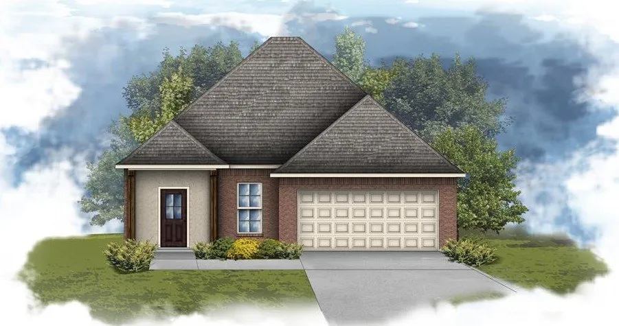 Features: garden tub, separate shower, and a walk-in closet in the primary suite, covered rear porch, ceiling fans in the living room and primary bedroom are standard, smart connect wi-fi thermostat, smoke and carbon monoxide detectors, post tension slab, landscaping, architectural 30-year shingles, flood lights, and more!