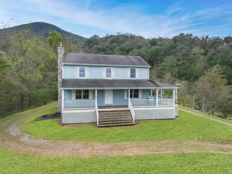 Stunningly scenic mountain farm of 236 +/- acres at base of McAfee Knob has miles-long views from the expansive front porch of a modern farmhouse. Complete seclusion at end of mile-long private road. Two ponds, streams, extra home, storage sheds, miles of trails, and approx. 14 acres of pasture complement this forested getaway. The 3 bedroom, 2.5 bath home has freshly refinished hardwood floors, fresh paint, & other updates. Stone fireplace in living room. Full, walk-out basement with plenty of space for storage, workshop, etc. Low taxes, unrestricted. Perfect for hunt camp, homestead, prepper retreat, or private country estate. Priced to sell well below assessed and appraised value. One-year home warranty offered to buyer.