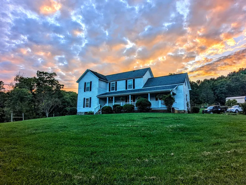 Classic frame two story farmhouse with spacious floor space. The first floor has entry foyer, living room, dining room, eat-in kitchen, den (craft room). primary bedroom and full bath. The second floor has three bedrooms, two full baths and hall area. Additional features include three fireplaces, large covered. front porch and covered rear porch. Recent improvements and upgrades include new first floor bath addition, new thermopane replacement windows, new outdoor wood burning stove and new septic system.The property features ample open land in small fields situated around the house for horses or even a few cows. The remainder of the property is woodland providing opportunities for a variety of outdoor activities including big game hunting. There is a bold spring creek on the property.