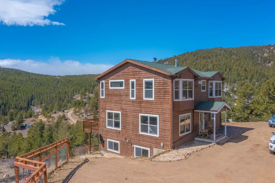 Enjoy unparalleled mountain views from every room in this modern, sun-filled, open floor plan home. Private quiet neighborhood w/ swimming/fishing lake. Gated drive, fenced yard; great for added security & pets. Plans for garage included, plus home has septic big enough for 4 bedrooms; roughed in plumbing for an extra bathroom already in basement. So much extra potential here! Hardwoods throughout, concrete counter tops, & SS appliances. Mudroom off spacious kitchen w/ new washer & dryer; a place to sit & take off your shoes after a day of hiking/biking trails surrounding you. New wood stove feels cozy on snowy nights & heats the whole home after a day skiing Eldora. All bedrooms & 2 full bath upstairs. Master w/ walk-in closet & jacuzzi jetted tub. Walkout finished basement w/ fireplace & space for bonus room or guest room, plus storage. Amazing deck w/ views you have to see to believe; ideal summer entertaining. 15 mins to Nederland; 25 mins to Boulder restaurants, breweries & shops.